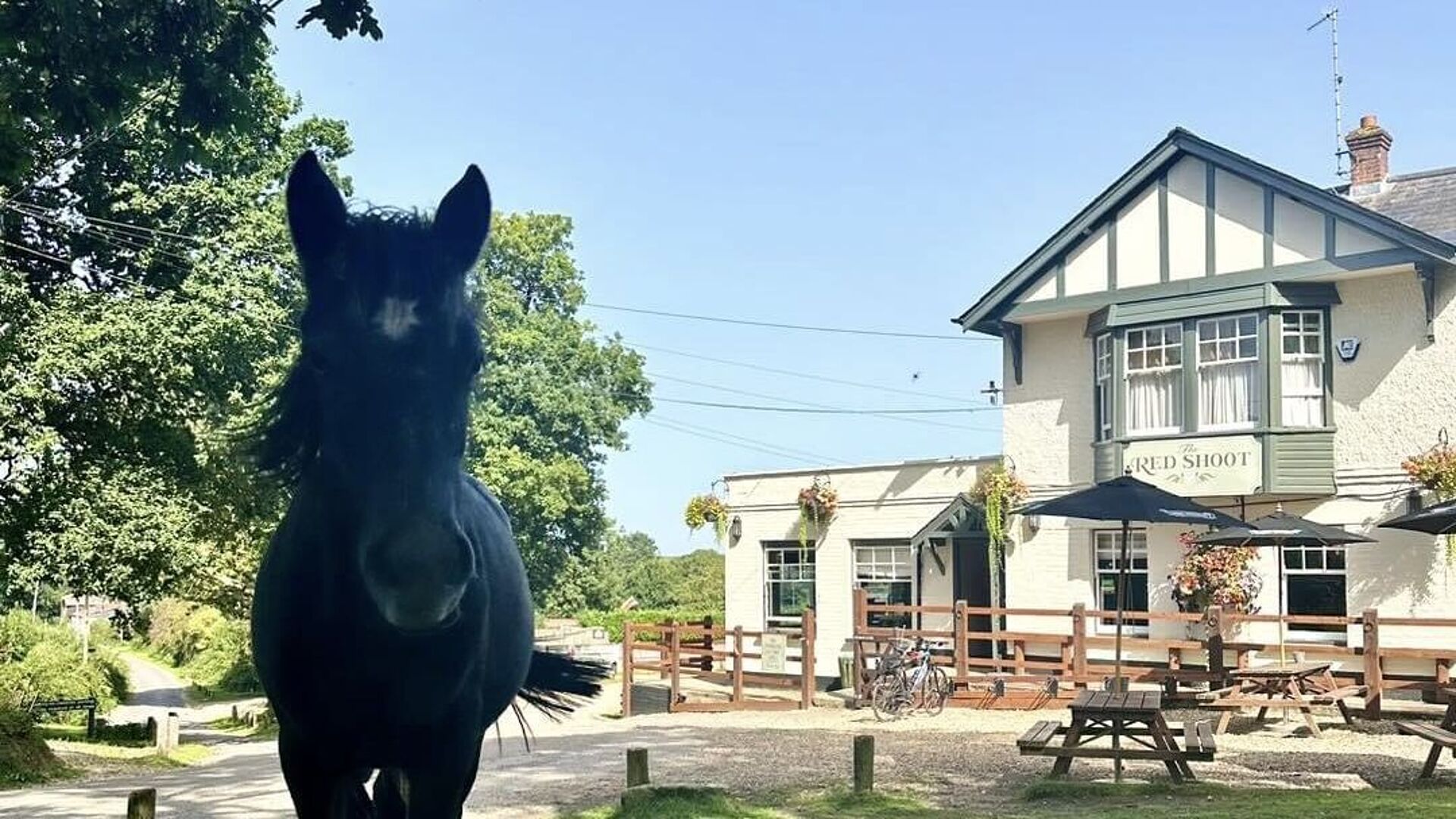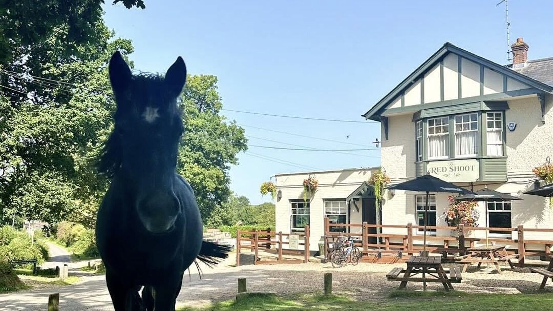 Nestled in the heart of the New Forest National Park, The Red Shoot features a spacious, dog-friendly beer garden where both owners and their four-legged companions can unwind and soak up the surroundings. Our large terrace is lined with picnic tables and benches with parasols, opening onto a lawn that stretches toward the forest; perfect for a sunny afternoon or a peaceful drink in the open air.
